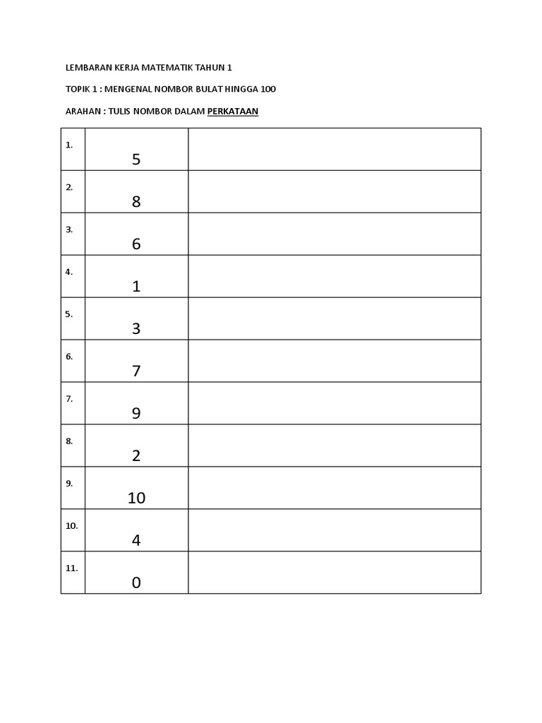 Menulis Nombor Dalam Perkataan 1 Tulis Koleksi Bbm Cikgu Zuraidah Facebook