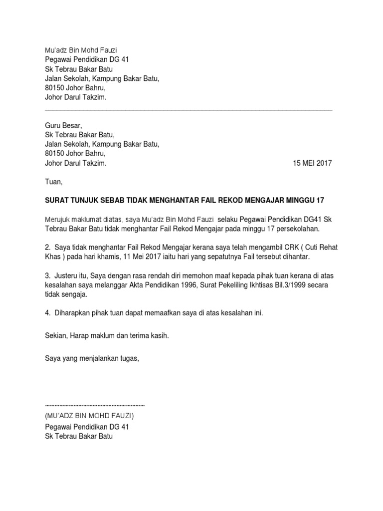 Surat Rasmi Tunjuk Sebab Lewat Hantar Surat Ras Cute766