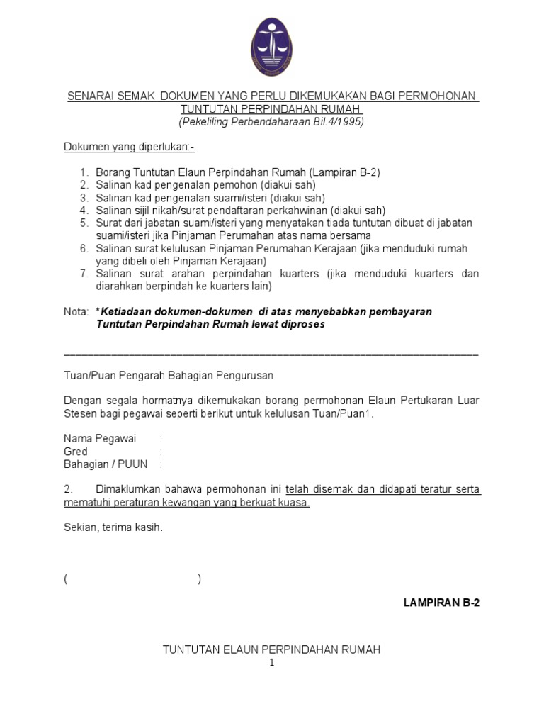 Tuntutan Elaun Perpindahan Rumah Lampiran B 2 Tuntutan Elaun Perpindahan Rumah Maklumat Pegawai Pdf Document