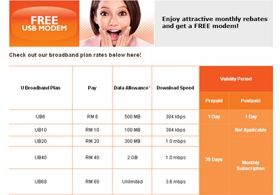 Promo U Mobile Prepaid Unlimited Mb68 Broadband Plan 7 2mbps Usb Modem For Rm 110