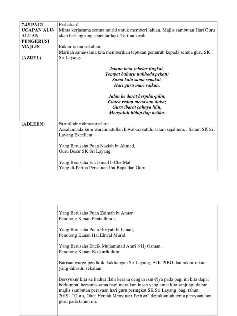 Teks Ucapan Pengacara Majlis