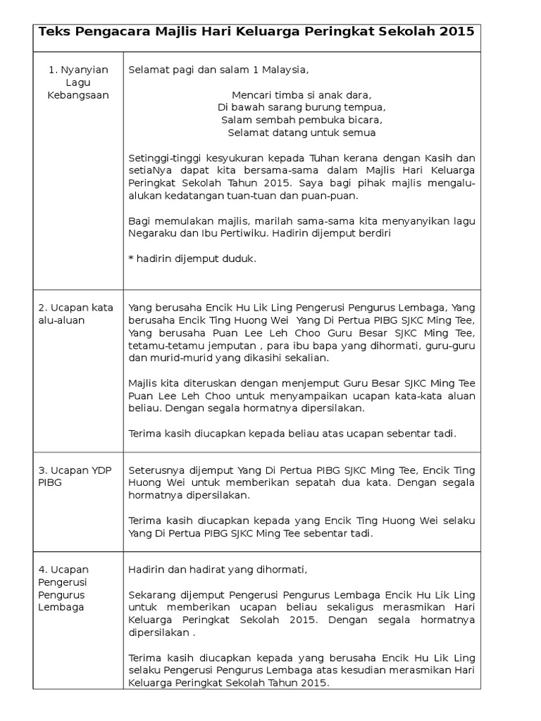 Teks Ucapan Pengacara Majlis Pendaftaran Tingkatan 1 Docx