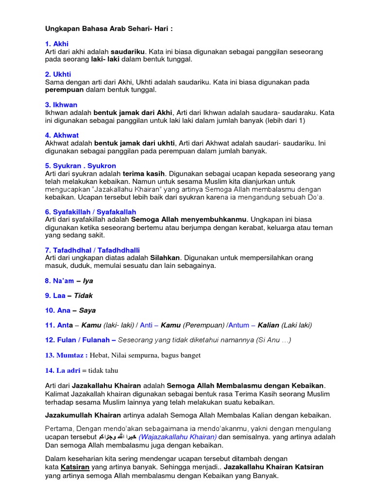1 Akhi Ungkapan Bahasa Arab Sehari Hari