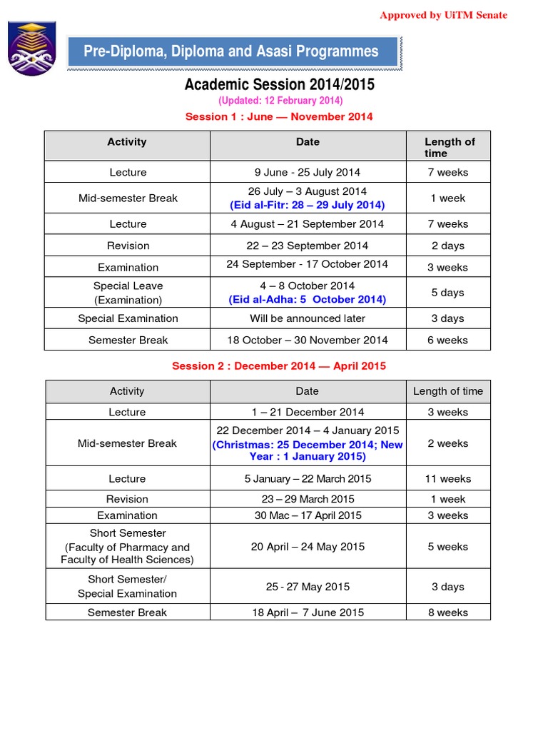 Academic Sessions 2014 2015 Uitm Academic Term Titles