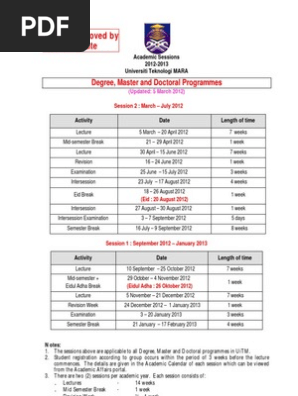 Academic Sessions 2013 2014 Approved By Uitm Senate I Pdated 6 February 2013 Q Universiti Teknologi Nara Academic Sessions 201312014 Pre Diploma Course Hero