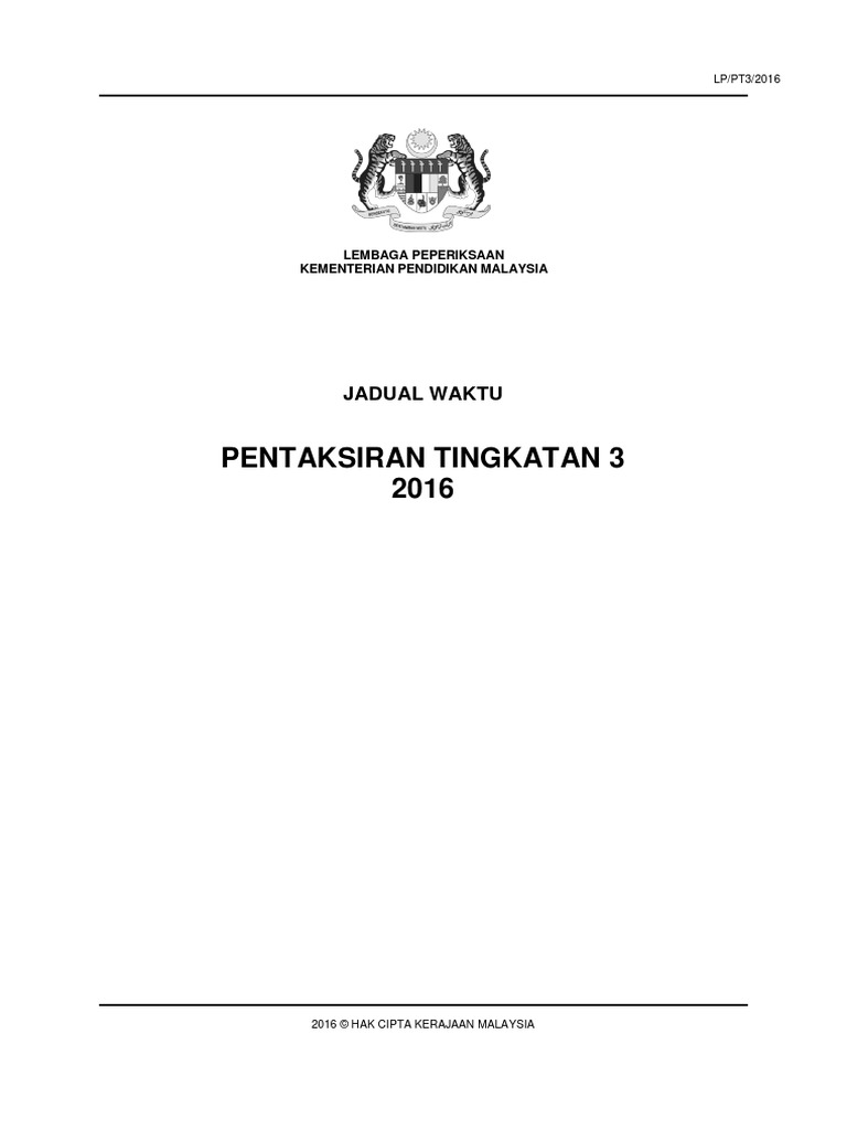 Jadual Waktu Pentaksiran Tingkatan 3 Pt3 Tahun 2016