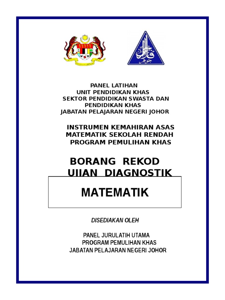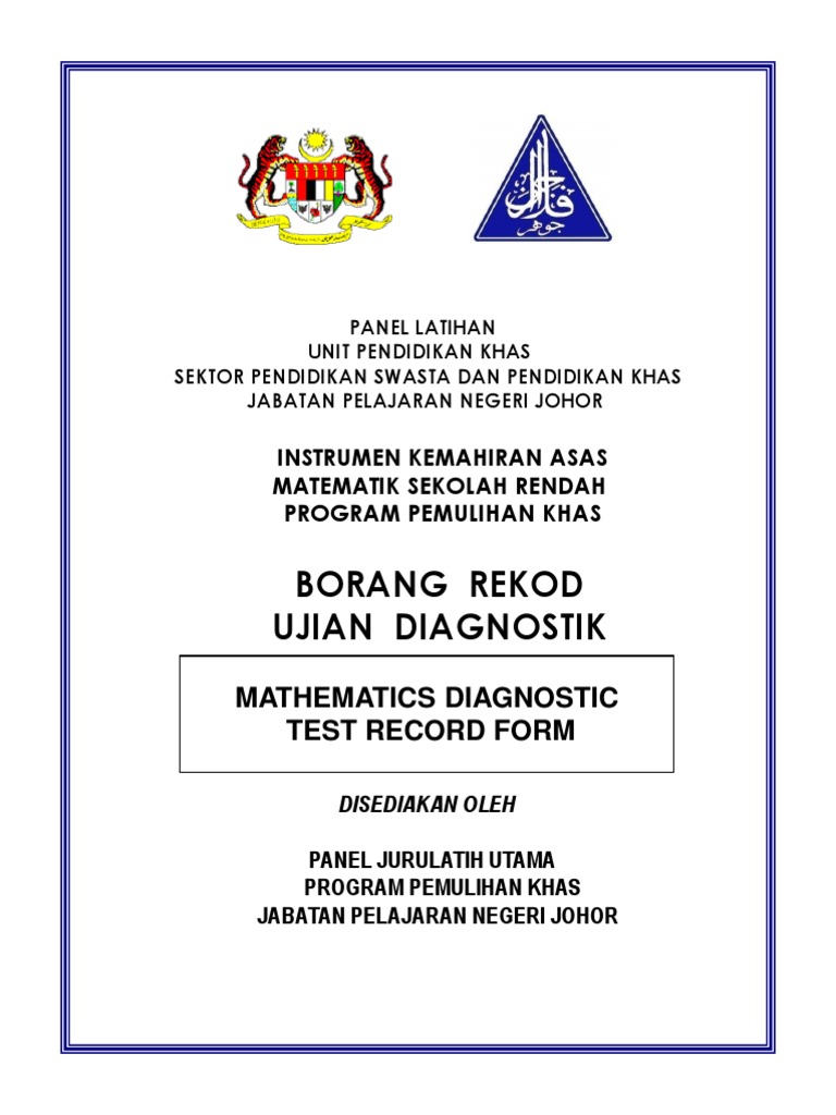 Borang Rekod Ujian Diagnostik Matematik Numbers Mathematical Concepts
