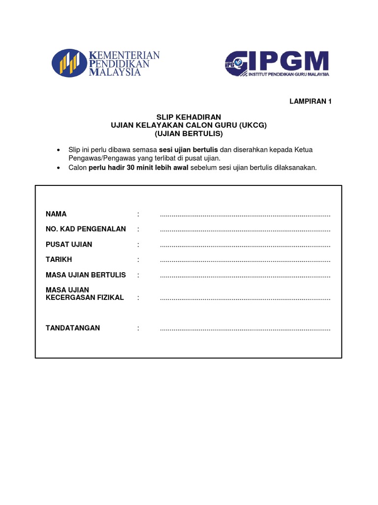 Slip Kehadiran Ujian Kelayakan Calon Guru