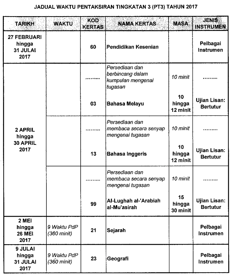 Jadual Pt3 2017 Rasmi Lembaga Peperiksaan Kementerian Pendidikan Malaysia