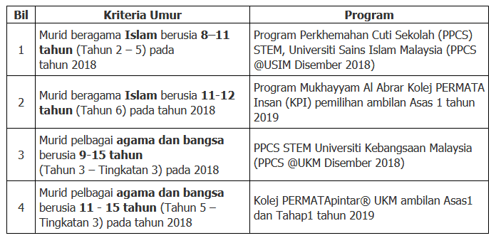 Alumni Permatapintar Promo Ujian Ukm1 2016 Kini Dibuka Ujian Ukm1 Merupakan Ujian Saringan Pertama Untuk Menyertai Program Program Berikut 1 Program Perkhemahan Cuti Sekolah Stem Ukm Jhu Untuk Pelajar 9 15 Tahun Tingkatan 3 Pada