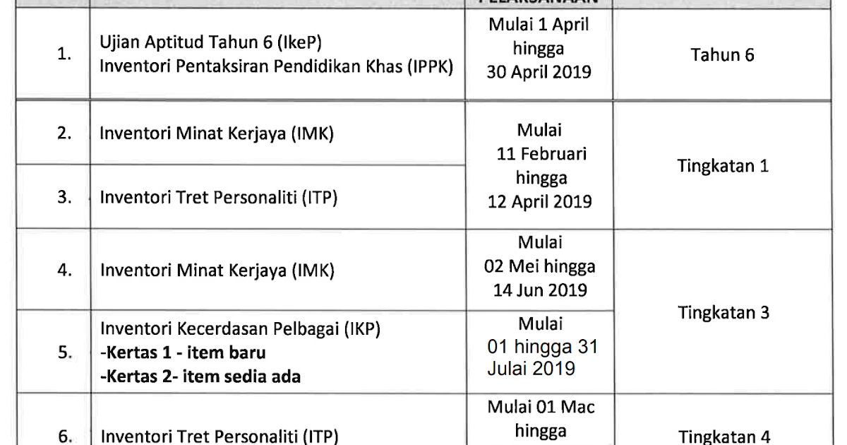 Kaunselor Nurhaiza Che Mat Jadual Tarikh Perlaksanaan Psikometrik Tahun 2019