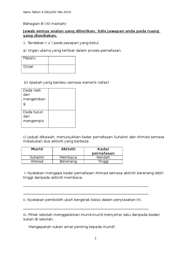 Sains Tahun 4 Kssr Ujian 1 Mac 2016