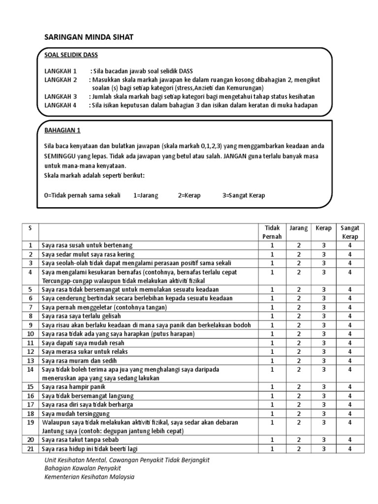 Jabatan Penerangan Negeri Sabah Info Kesihatan Jika Ingin Mengetahui Tahap Kesihatan Mental Anda Lakukan Ujian Atas Talian Di Pautan Berikut Https Www Ramlimusa Com Questionnaires Depression Anxiety Stress Scale Dass 21 Bahasa Malaysia