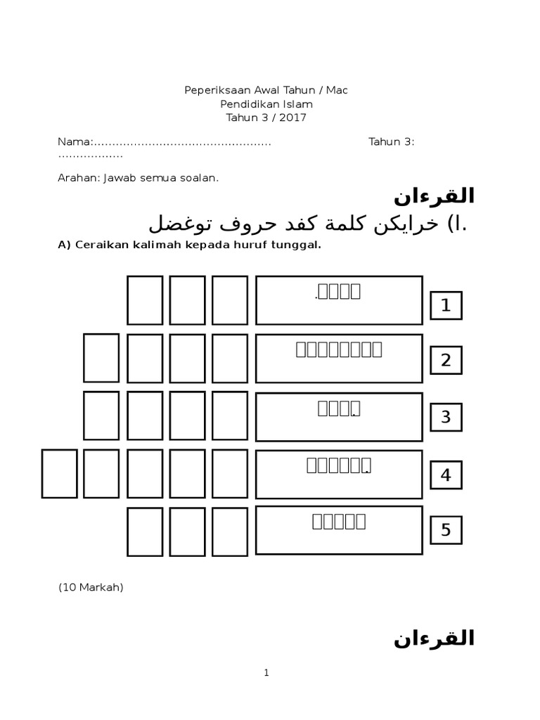 Soalan Peperiksaan Agama Islam Tahun 1 Kuora K