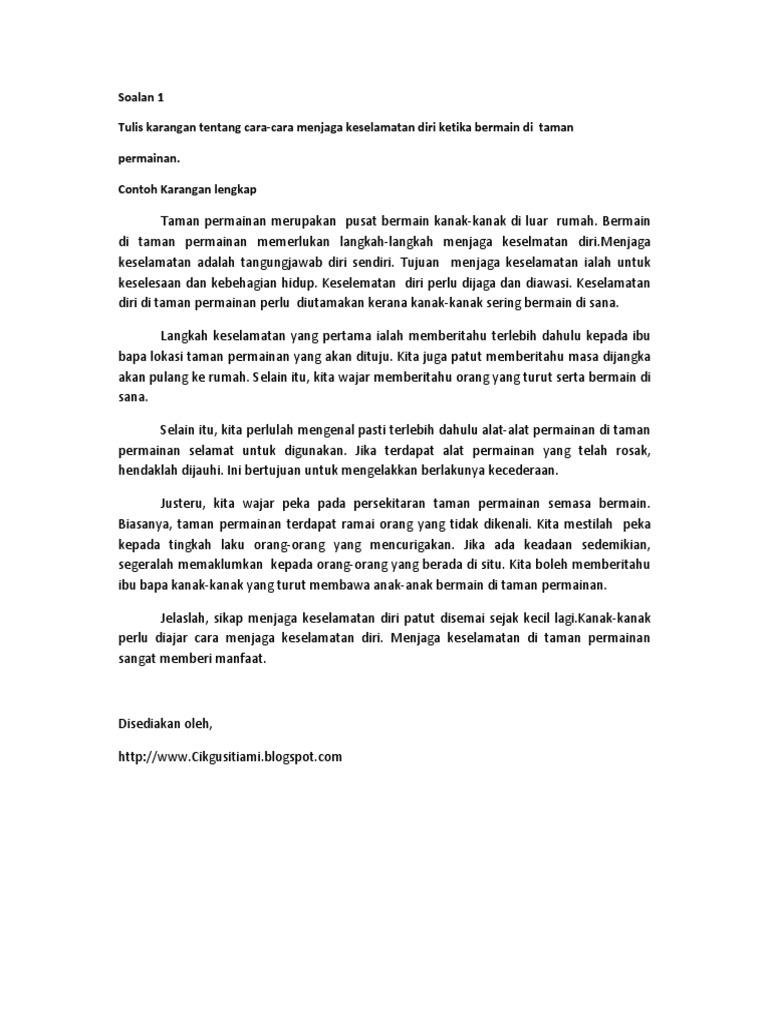 Contoh Karangan Keselamatan Di Taman