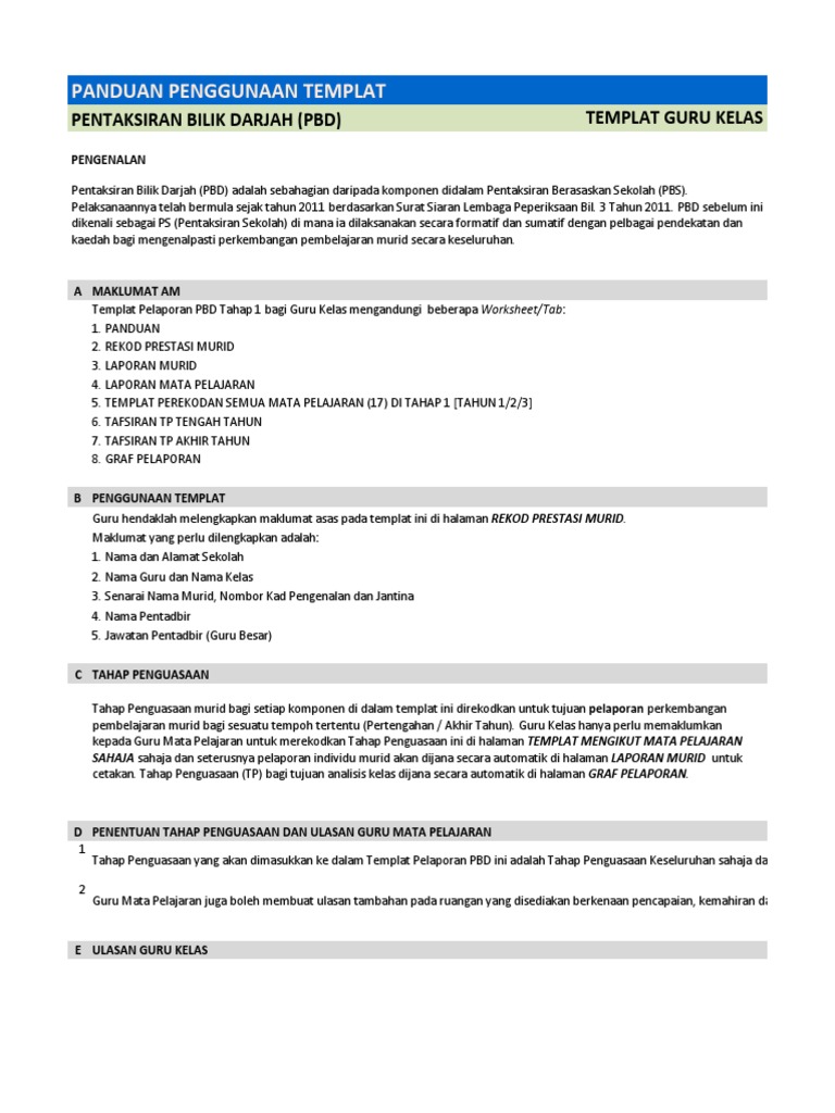 Panduan Menggunakan Templat Pelaporan Pentaksiran Bilik Darjah Pbd Gabung Untuk Kegunaan Guru Kelas