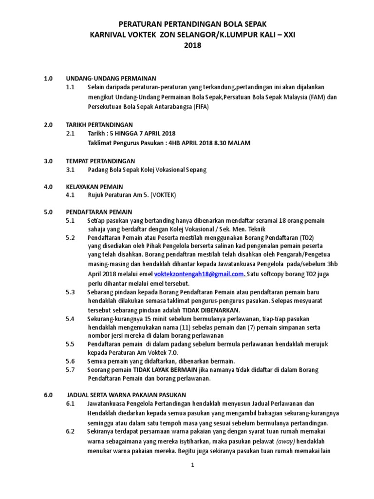 Peraturan Permainan Bola Sepak Karnival Sukan 7 1 5 Kad Kuning Dalam Perlawanan Peringkat Kumpulan Pdf Document