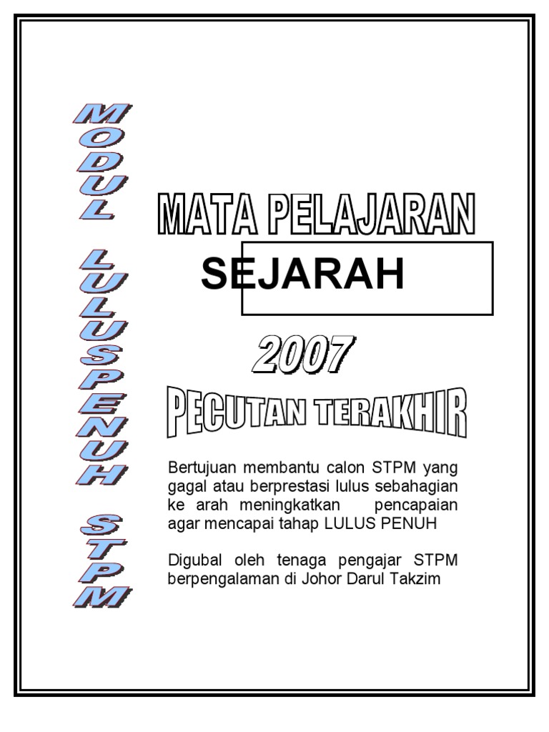 Jawatankuasa Pemikir Sejarah Stpm Pulau Pinang 2015 Modul Sukses Sejarah 940 3 Penggal 3 Sejarah Malaysia Dan Asia Tenggara Pdf Free Download