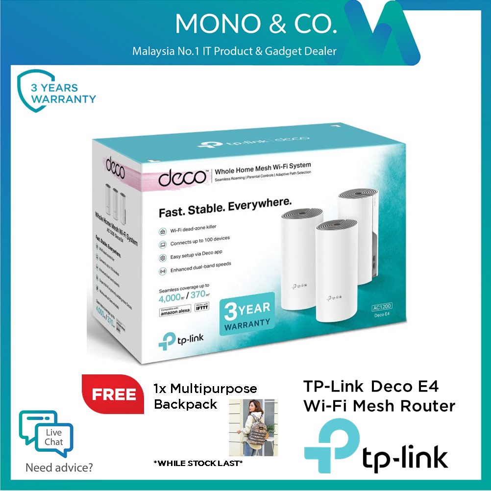 New Tp Link Ac1200 Whole Home Mesh Wifi System Deco E4 3 Packs Support Unifi Lazada