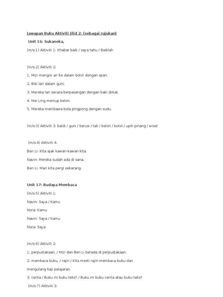 Jawapan Buku Aktiviti Tahun Dua Jilid 2 Pdf Document