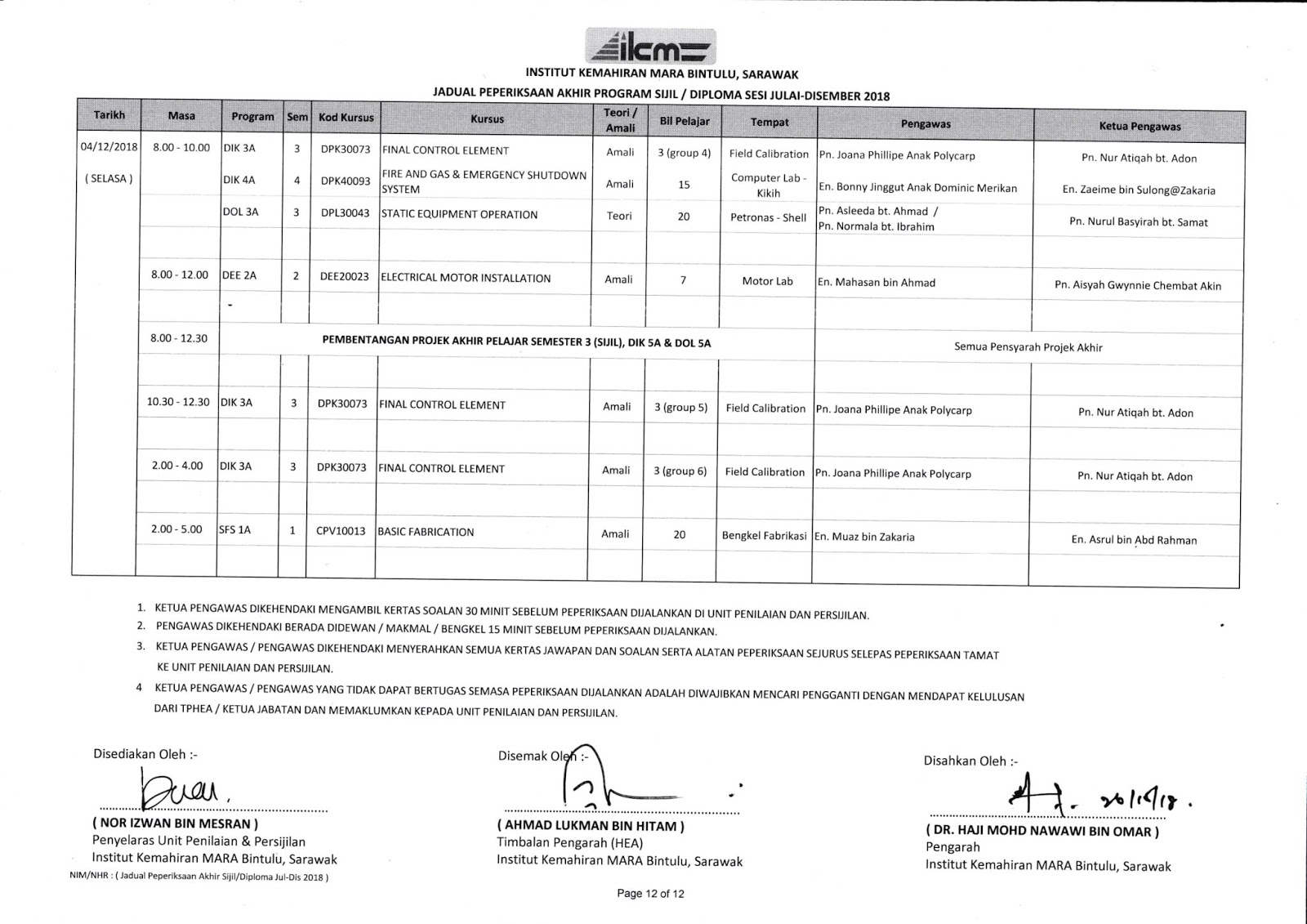 Jadual Peperiksaan Akhir Sesi Julai Disember 2018 Mohammadmuai