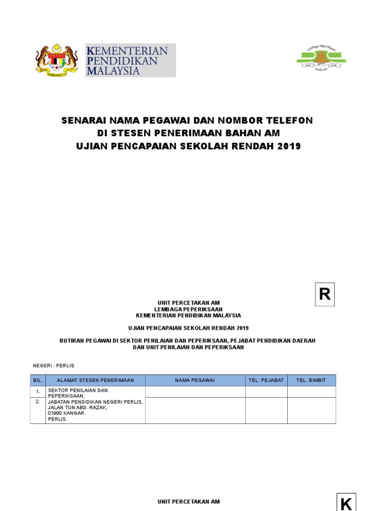 Stesen Penerimaan Bahan Am Dan Nama Peg Meja Negeri Dan Ppd Upsr 2019 1
