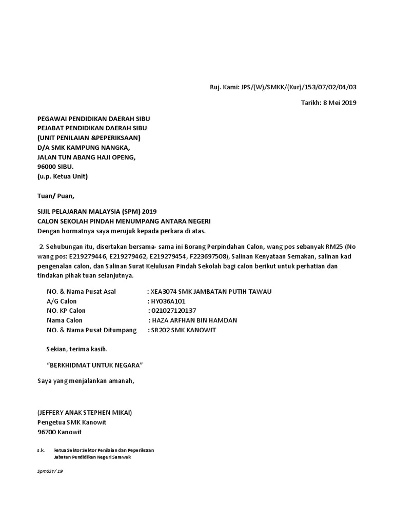 Surat Iringan Calon Menumpang Docx