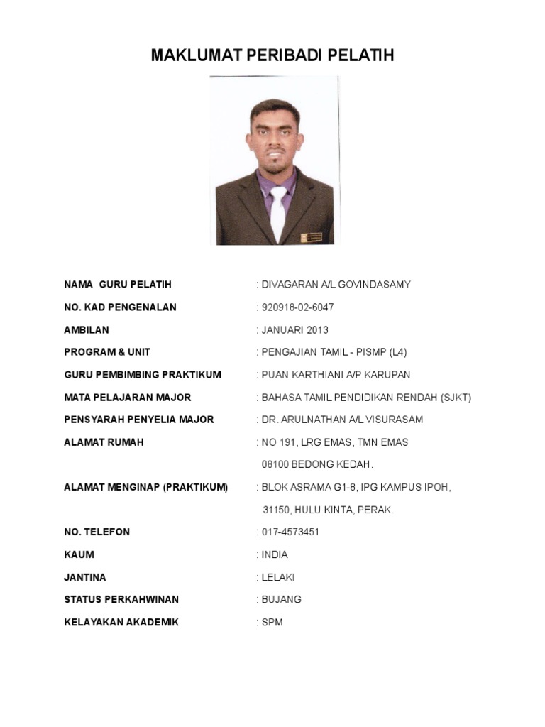 My Biodata Formal For Praktikum Docx