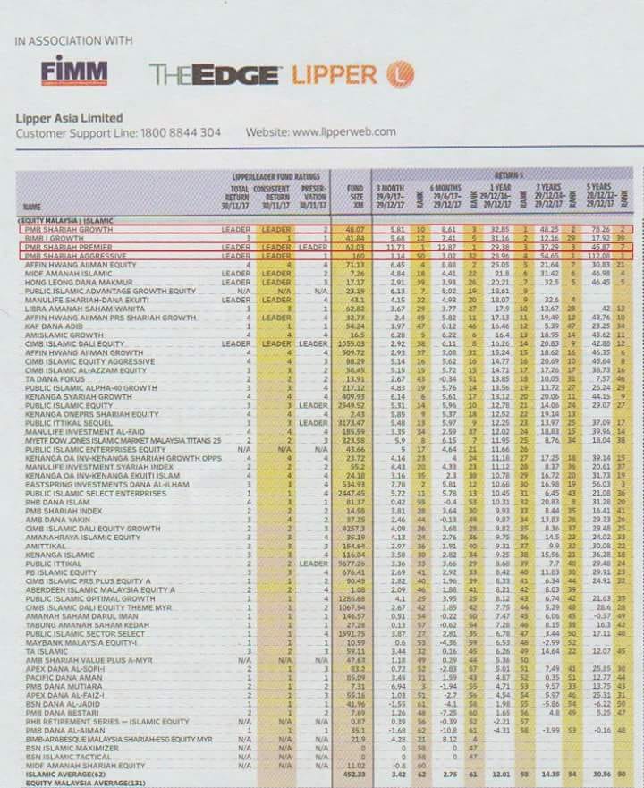Islamic Investment Malaysia Prestasi Cemerlang Dana Dana Pmb Investment Untuk 1 Tahun 2017 Serta 3 Tahun Dan 5 Tahun Berakhir 29 Disember 2017