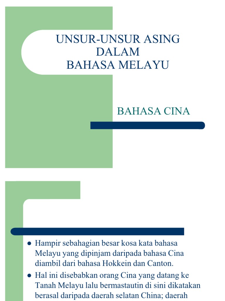 Bahasa Melayu Unsur Unsur Asing Dalam Bahasa Melayu Pinjaman Daripada Bahasa Cina