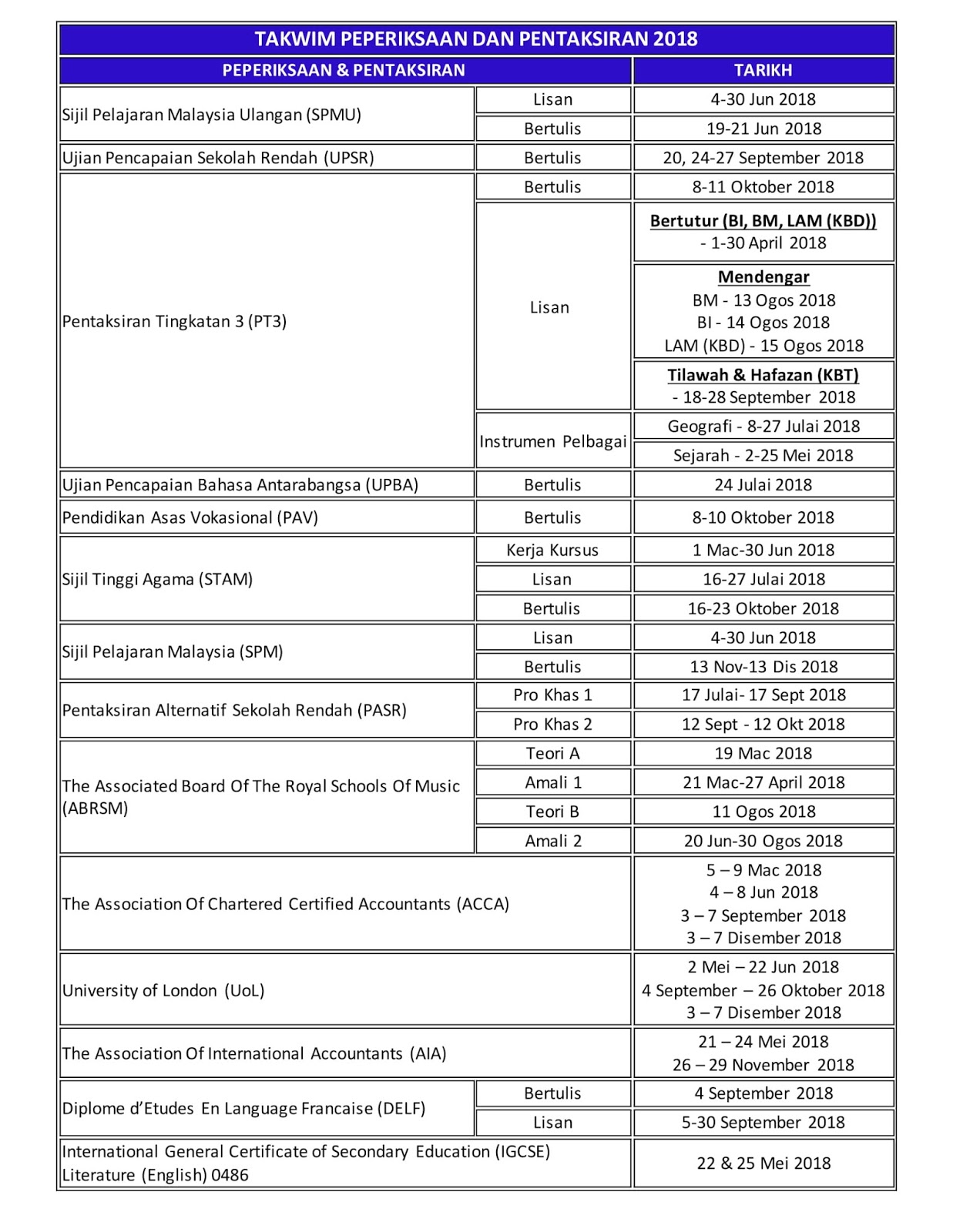 Updated Malaysia School Exam Dates 2018 2019 Pendidikanmalaysia Com