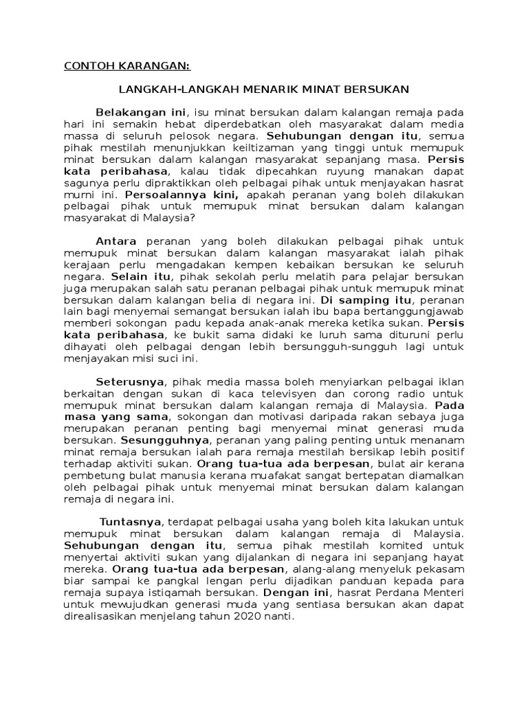 Rangka Karangan Karangan Sukan Spm Karangan Net