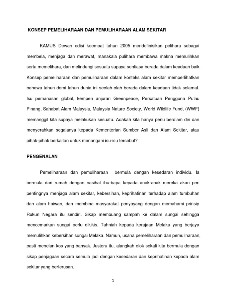 Konsep Pemeliharaan Dan Pemuliharaan Alam Sekitar Docx