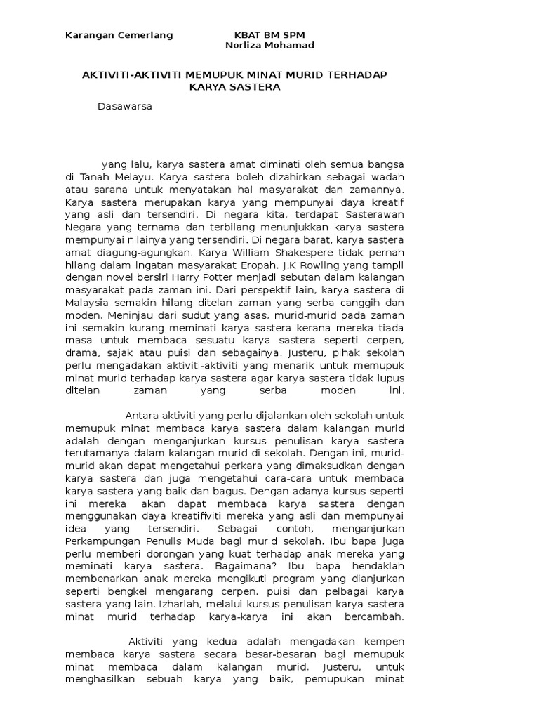 Esei Usaha Menarik Minat Pelajar Meminati Karya Sastera