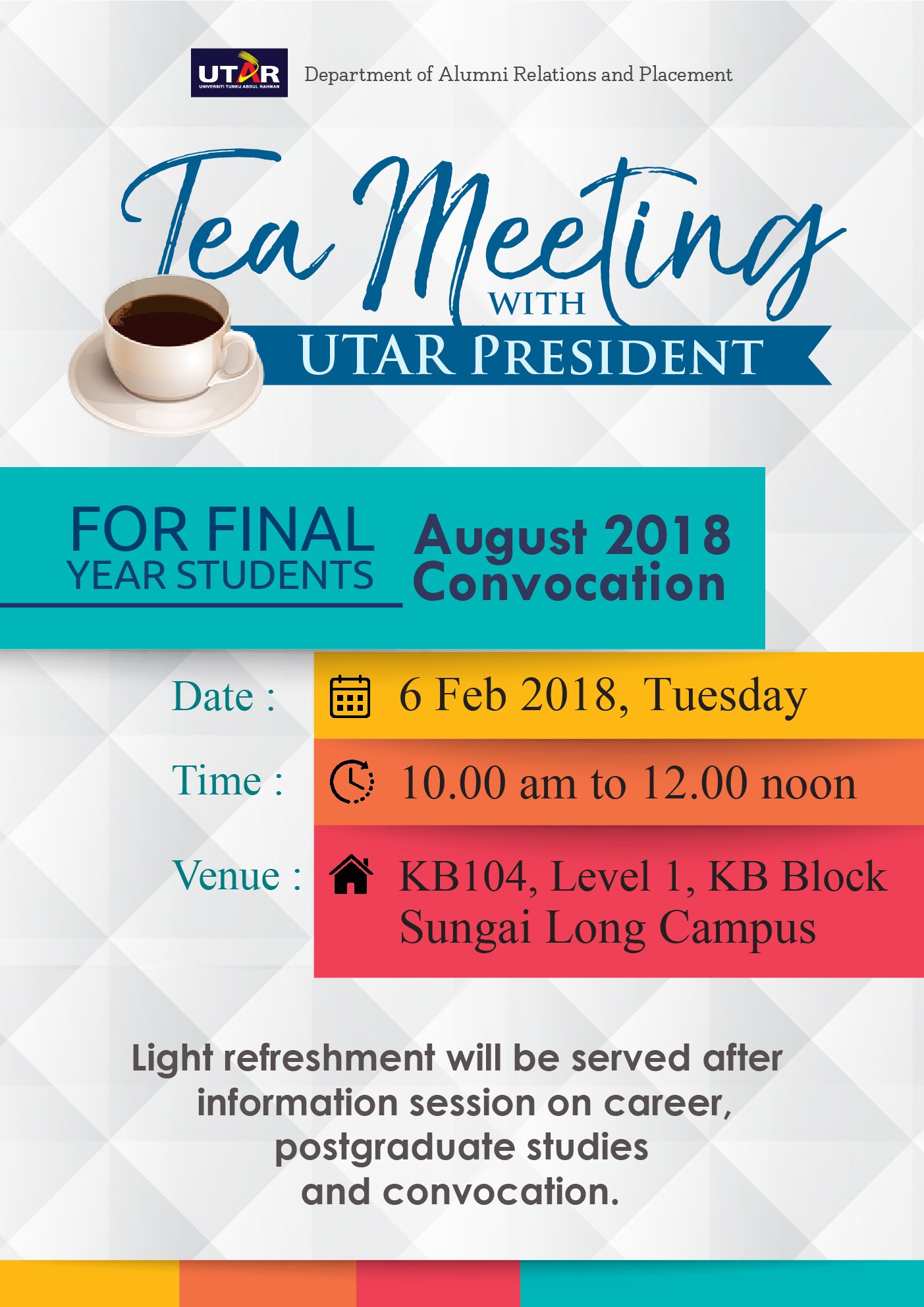 Utar On Twitter Tea Meeting With Utar President Date 6 February 2018 Time 10 00am To 12 00 Noon Venue Kb104 Level 1 Kb Block Sungai Long Campus Light Refreshment Will Be Served After
