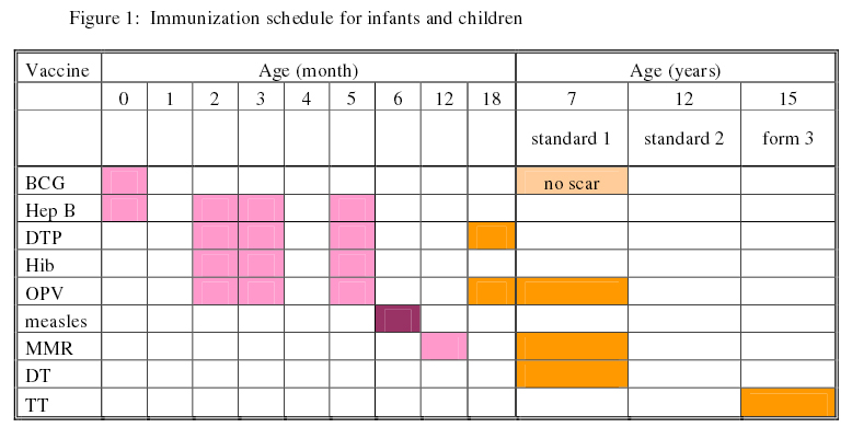 Children might receive other optional vaccinations based on doctor s advice. Bacillus calmette guérin bcg vaccine that gives protection against tuberculosis. Hepatitis a 12 months. Vaccination schedule by the ministry of health malaysia.