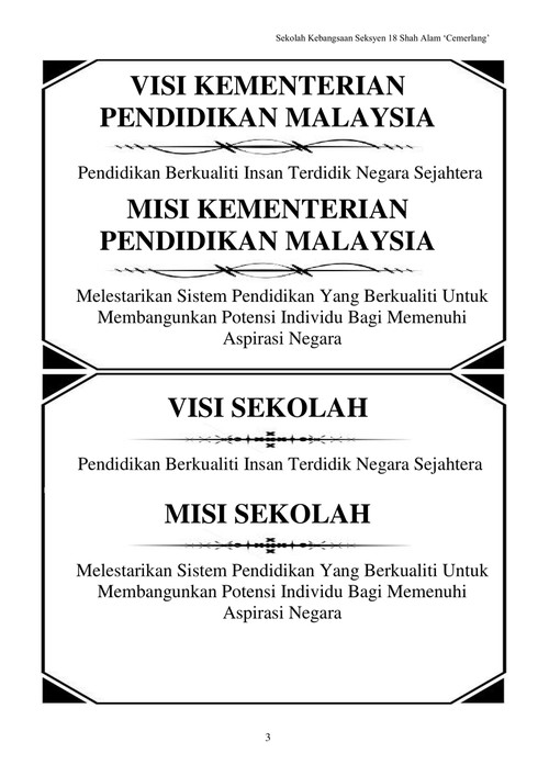 Kementerian pendidikan maksud bekalan pembangunan 63 visi pendidikan berkualiti insan cemerlang negara sejahtera. Visi dan misi visi memperkasa kerasmian dan amalan ugama islam sebagai cara hidup yang lengkap dan sempurna bagi menepati negara zikir dan بلدة طيبة ورب غفور negara yang aman ma mur dan tuhan yang maha pengampun. Mengatur pelbagai aktiviti dalam bahagian ini dan juga dengan badan badan dari bahagian bahagian lain kementerian pendidikan malaysia serta badan badan lain. Anda perlu hidupkan javascript untuk melihatnya.
