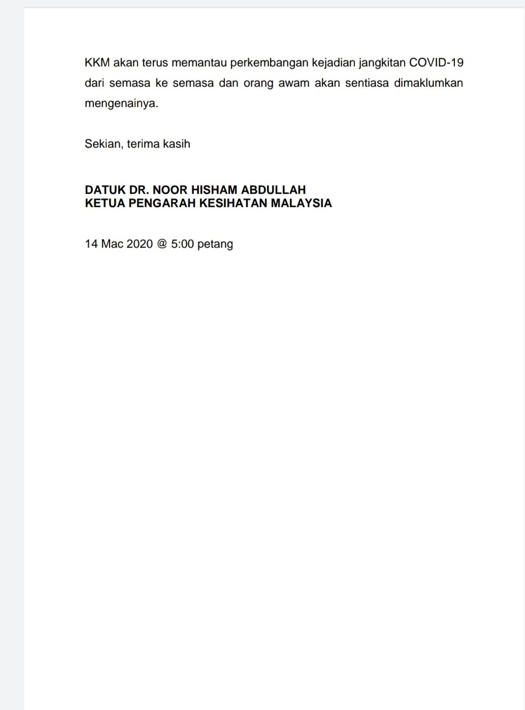Kkmalaysia On Twitter Situasi Semasa Covidー19 Di Malaysia 14 Mac 2020 1 41 Kes Baru Menjadikan 238 Keseluruhan Setakat Ini 2 Dua Kes Telah Sembuh Menjadikan 35 Pesakit Telah Sembuh Dan Discaj