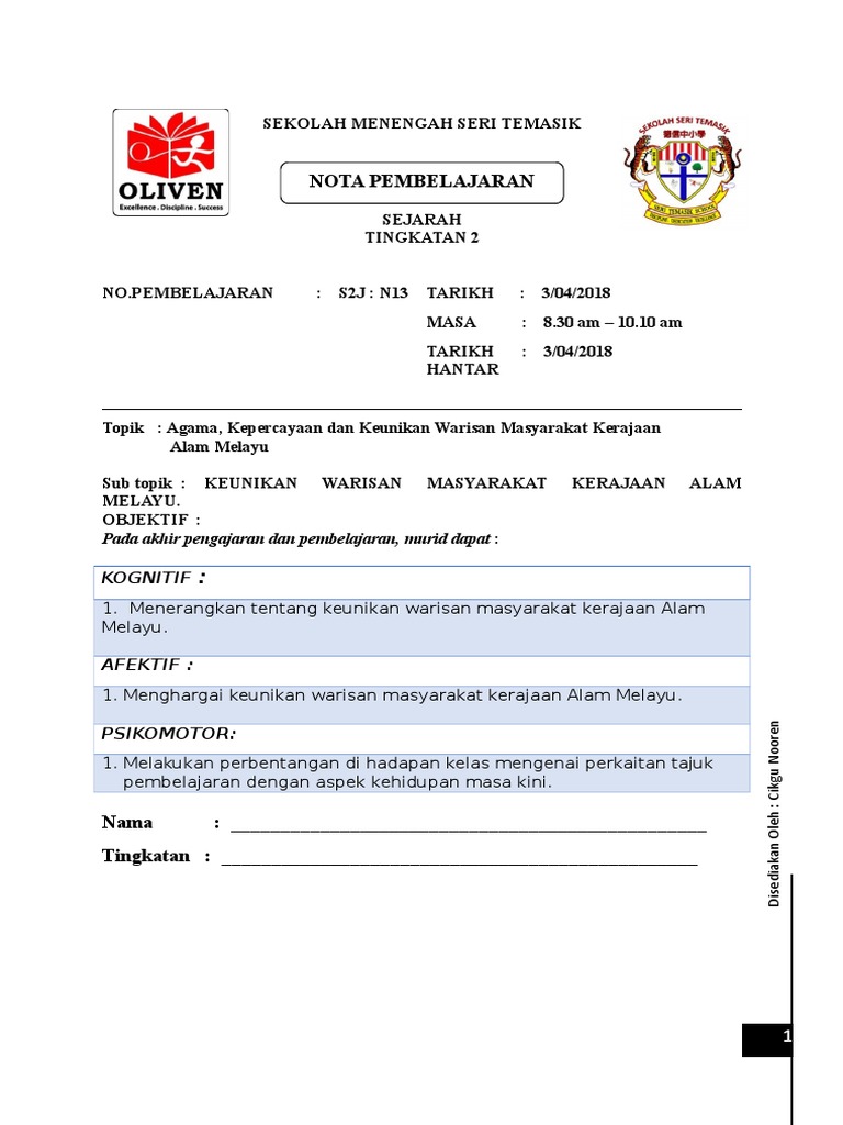 Rancangan Pengajaran Tahunan Sejarah Kssm Tingkatan 2 Tahun 2019