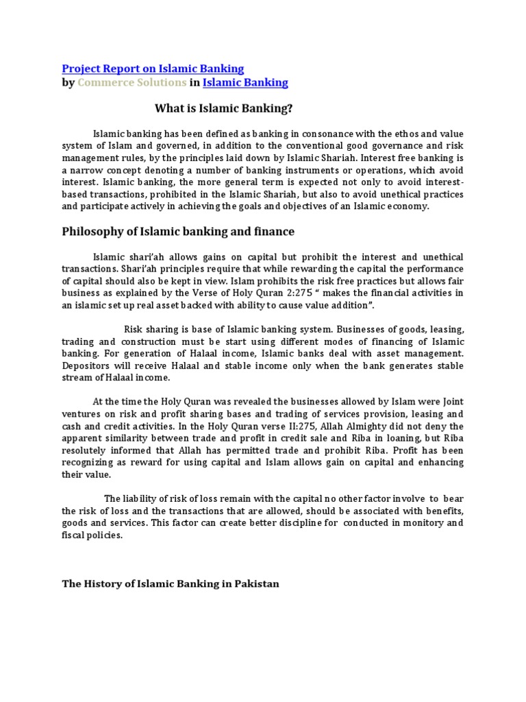 Abstract and figures this research paper suggests that islamic banking is spreading its wings in pakistan and is positioning for growth. مصرفية إسلامية or sharia compliant finance is banking or financing activity that complies with sharia islamic law and its practical application through the development of islamic economics some of the modes of islamic banking finance include mudarabah profit sharing and loss bearing wadiah safekeeping musharaka joint. Pakistan was among the three countries in the world that had been trying to implement interest free banking at comprehensive national level. Clear cut statements in respect of vision and mission were announced.
