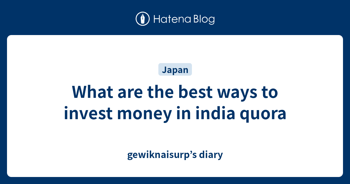 What Are The Best Ways To Invest Money In India Quora Gewiknaisurp S Diary