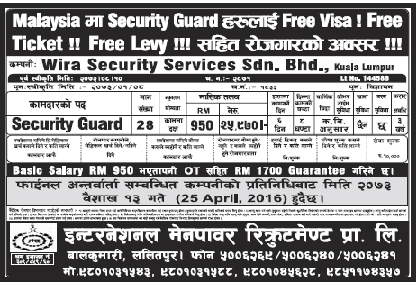 Gulf Jobs Vacancy By Various Manpower Jobs Demand For Malaysia For 21th April In Security Guard Post