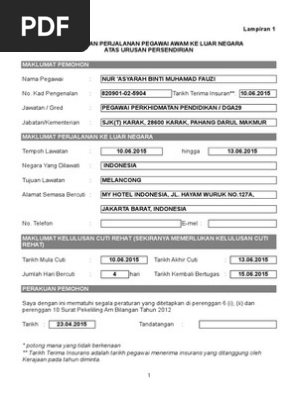 Borang Lawatan Ke Luar Negara Mulai 2015 Xls Document