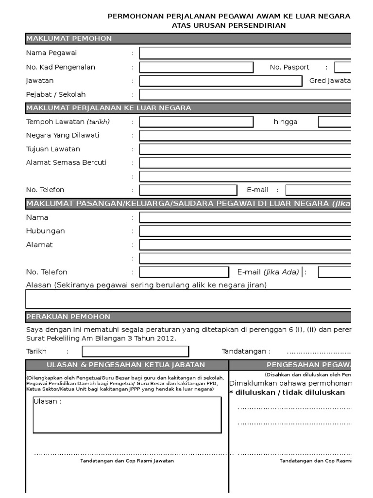 Borang Lawatan Ke Luar Negara Mulai 2015
