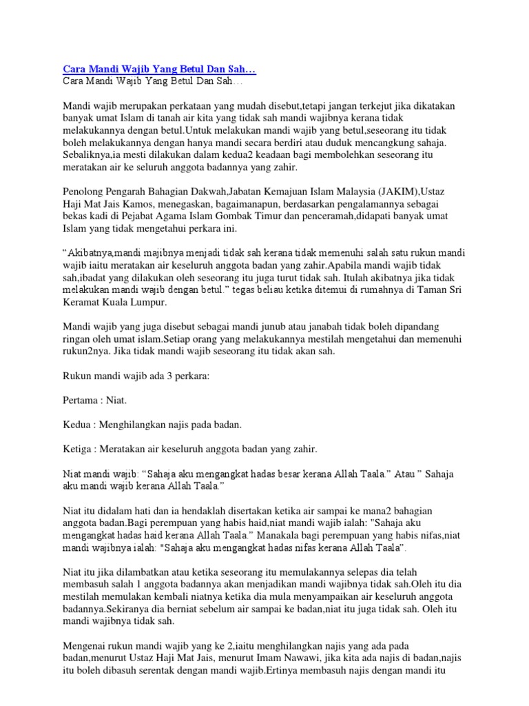 Niat Mandi Wajib Yang Mudah Dan Betul Blog Test Template