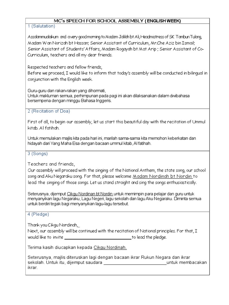 Mc Script For Uniform Body Morning Assembly Religious Behaviour And Experience