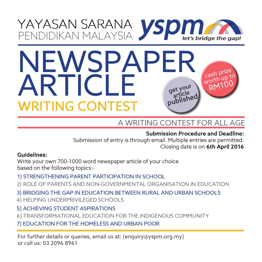 Yspm On Twitter Attention Newspaper Article Writing Contest Rm100 Up For Grabs Submit Your Articles Now All The Best Https T Co Xyhzwq7ygn