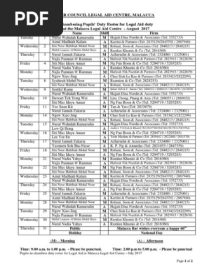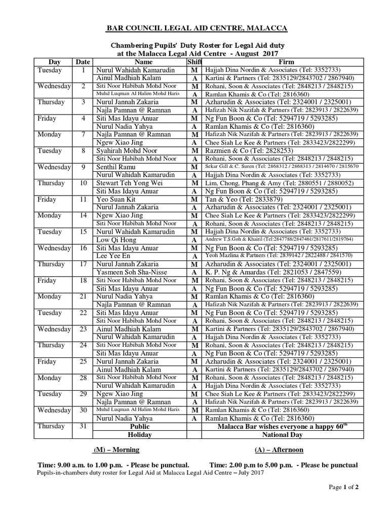 A Roster August 2017 Legal Aid