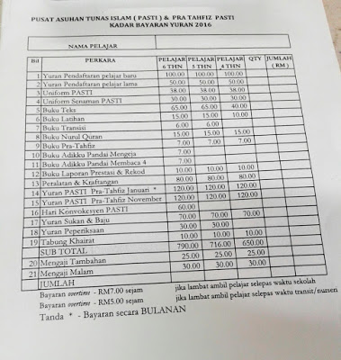 Yuran Pendaftaran Tadika Pasti 2017